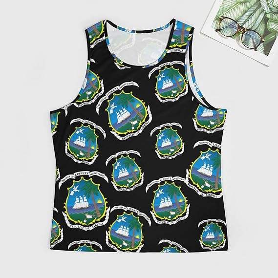 Liberia Coat of Arms Men's Eco-Friendly Breathable Casual Muscle Tank Top Sleeveless Workout Gym Fitness Tees Vest Woven Design
