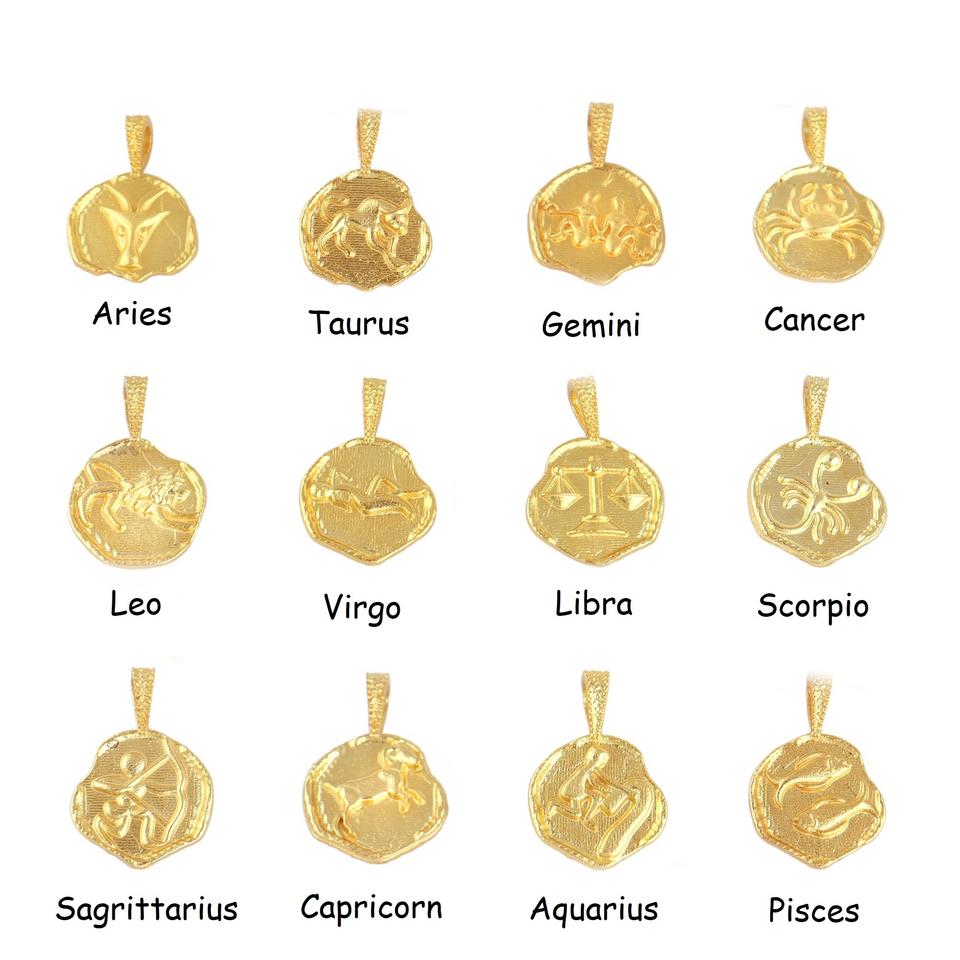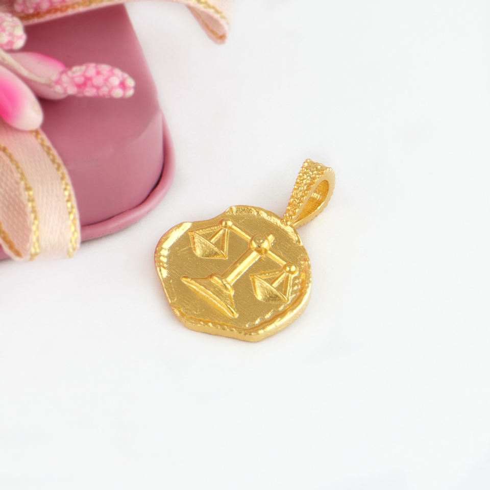 Libra zodiac pendant charm minimalist designer beaded loop casted fancy coin charm pendant brass zodiac symbol gold pendant