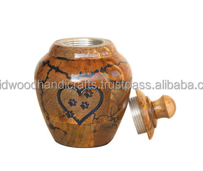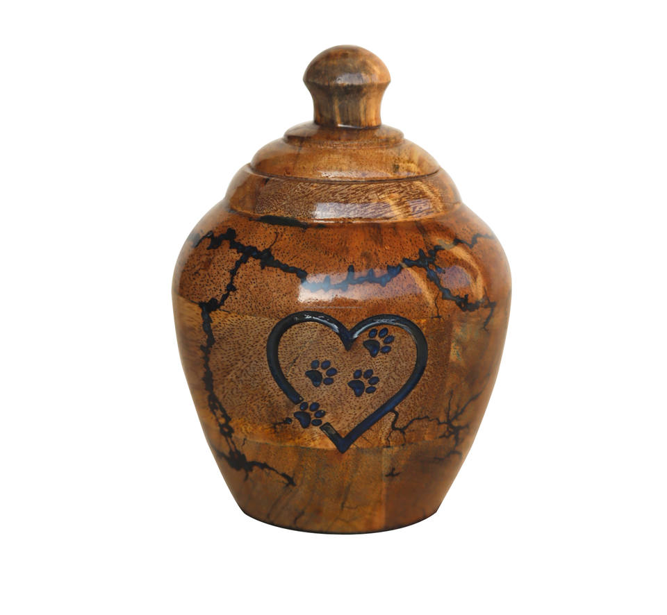 Lichtenberg Figure Dsign With Pet Paw Prints Urns Wood Cremation Urns For Cat and Dog Ashes