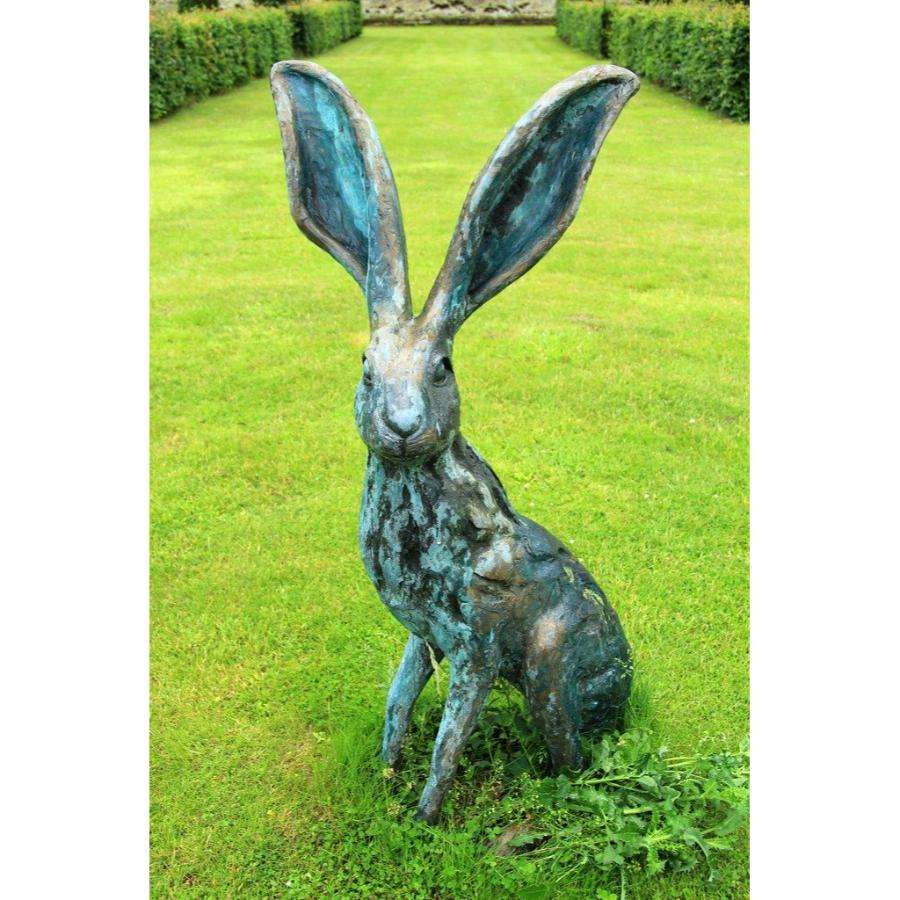 Life Size Antique Rabbit Sculpture Easter Decoration Garden Statue Handmade Casted Vintage Bunny Figurine Showpiece For Outdoor