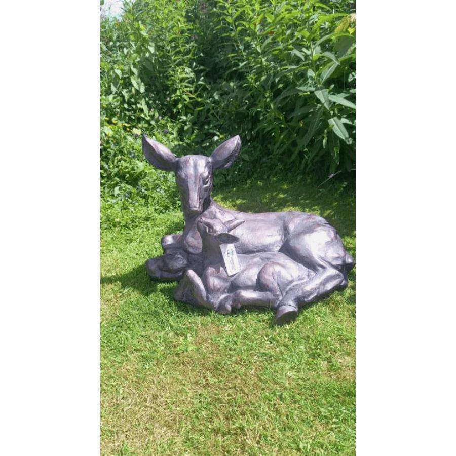 Life Size Sitton Bronze Reindeer With Fawn Garden Sculpture Handmade Antique Deer Statue Decorative Ornaments Christmas Items