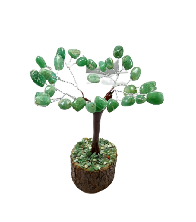 Life Tree Green Aventurine Crystal Gem Tree, Raw Cluster Stone Lucky Silver Wire Tree Feng Shui Decor for Decoration Gifts