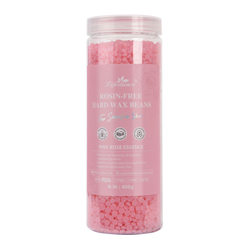 Lifestance Rosin-Free 400g Plastic Bottle Hair Removal Hard Wax Beans Hot Waxing Beads for Leg Body Pink Rose Flavor