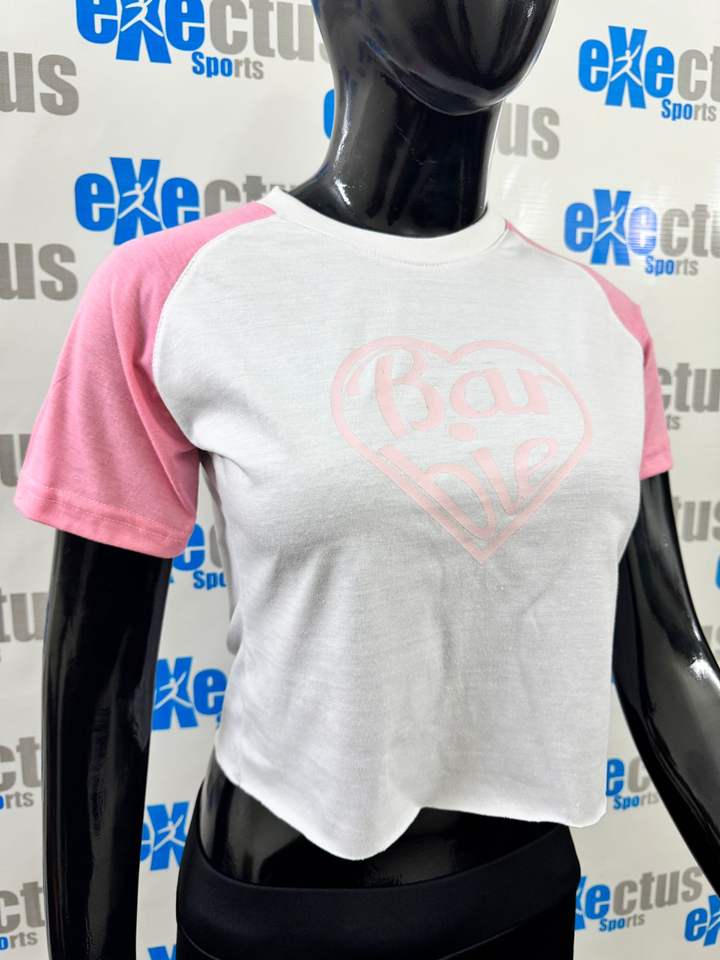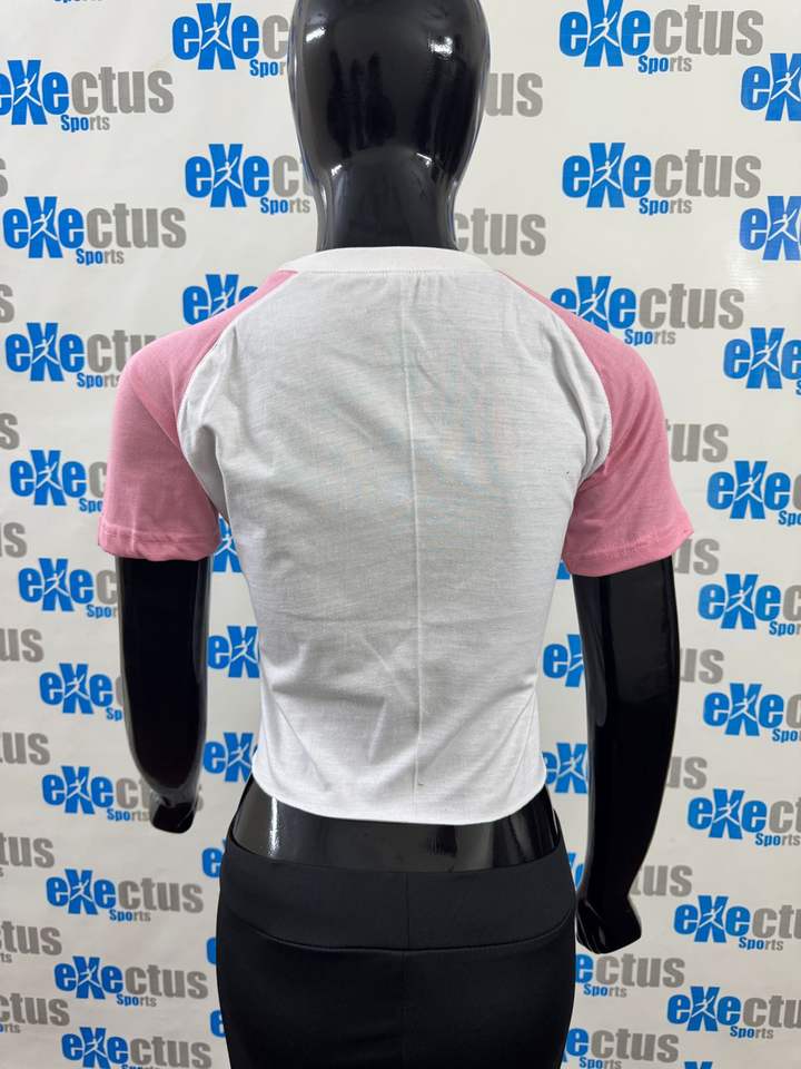 Light Baby Pink White Cropped T-Shirts Cotton Polyester Raglan Sleeve Crew Neck Slim Fit Blouse Ladies Crop Top Shirt