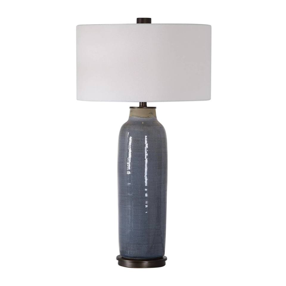 Light Blue 3D Grid Textured Ceramic Column Modern Table Lamp | Sculptural Artisan Lighting for Hotel Feature Space & Lounge