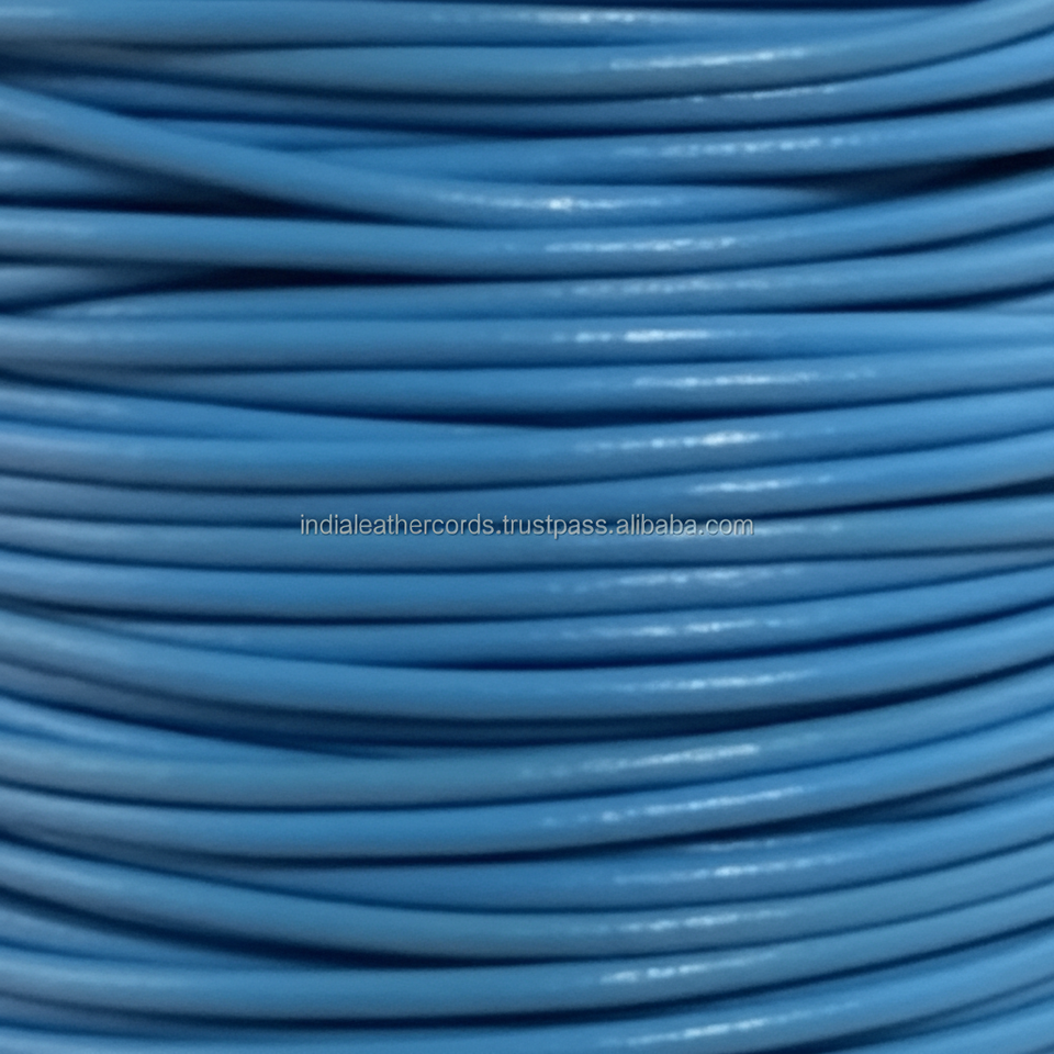 Handmade Light Blue Leather Cord Round Flat Shape Jewelry Findings Sizes 3mm-8mm with Copper Steel and Pearl