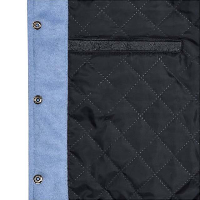 Light Blue Color Wool Body With White Color Leather Sleeve Varsity Men's Jackets OEM Custom Button Up Breathable Baseball Jacket