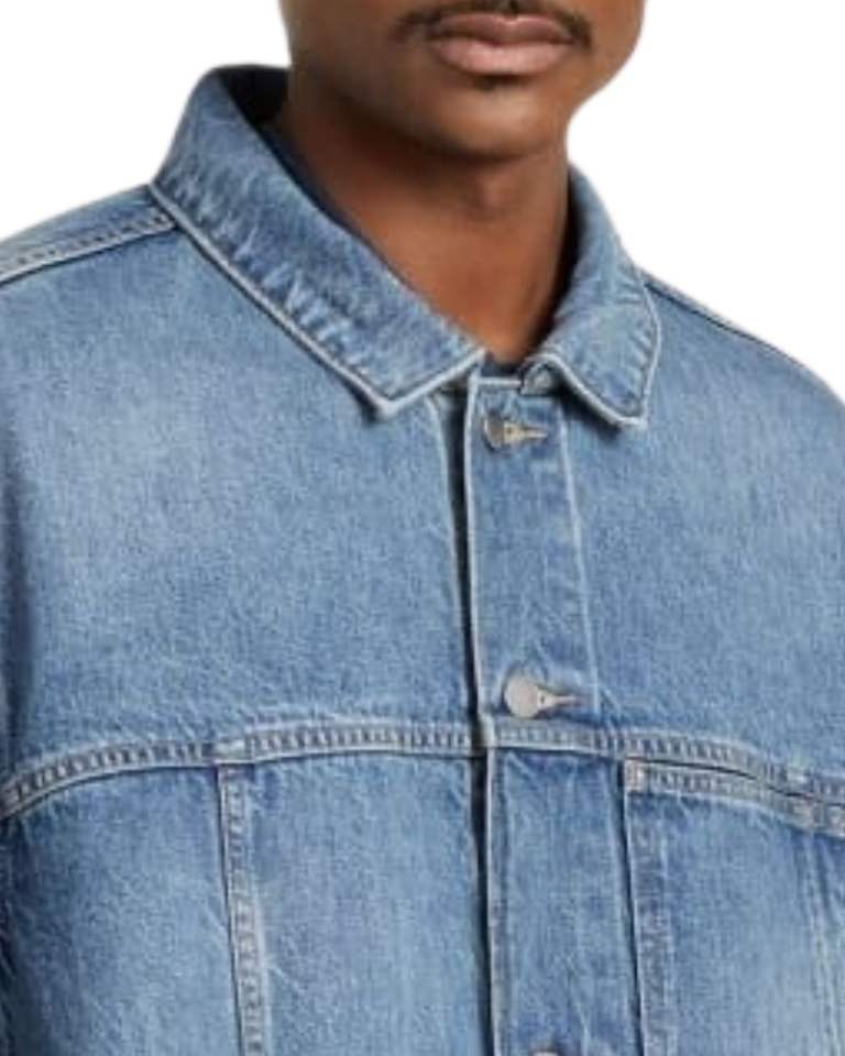 Light Blue Denim Jacket For Men With Oversized Fit Button Closure Front Pocket Design Casual Streetwear Outerwear Washed Denim