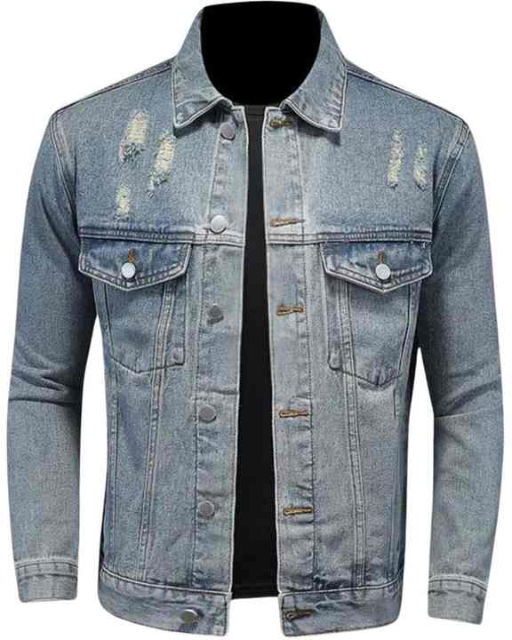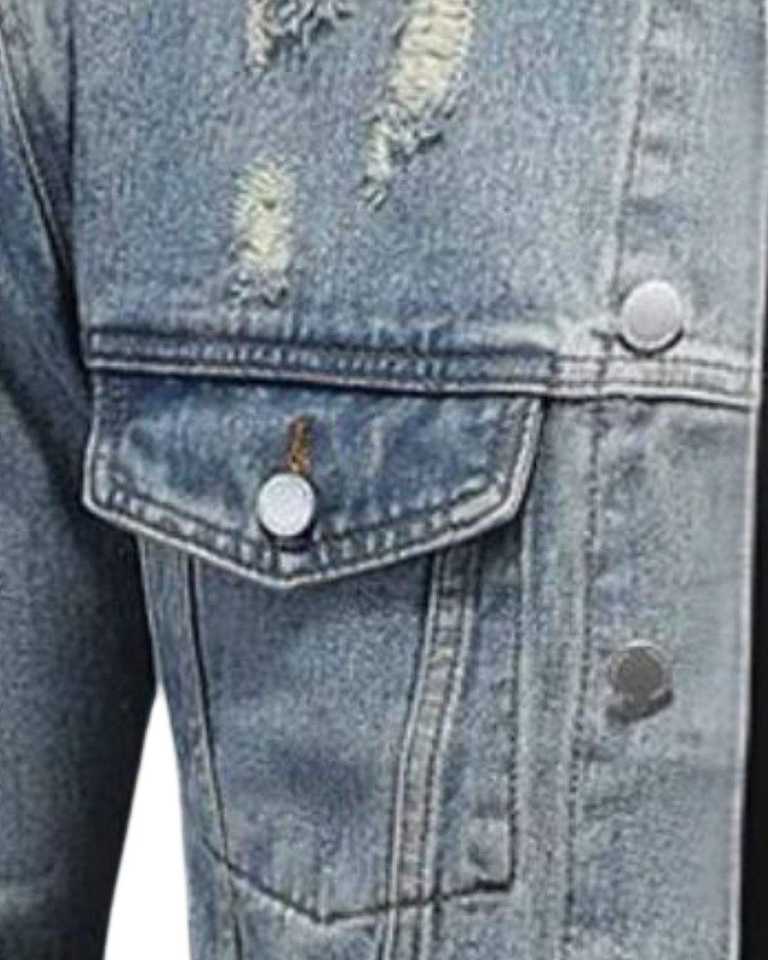 Light Blue Distressed Denim Jacket for man With Button Closure Stylish Casual Outerwear Fashion Slim Fit Trendy