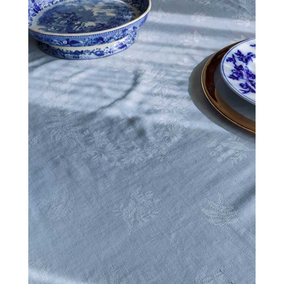 Light Blue Dyed Damask Cotton Tablecloth with 12 Napkins 270x168cm
