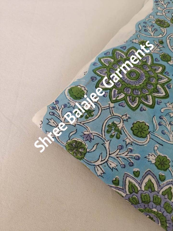 Light Blue Green 100% Pure Cotton Fabric Indian Floral Hand Block Print Cloth Women's Boys' Clothing Bags Unique Block Design