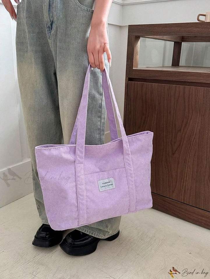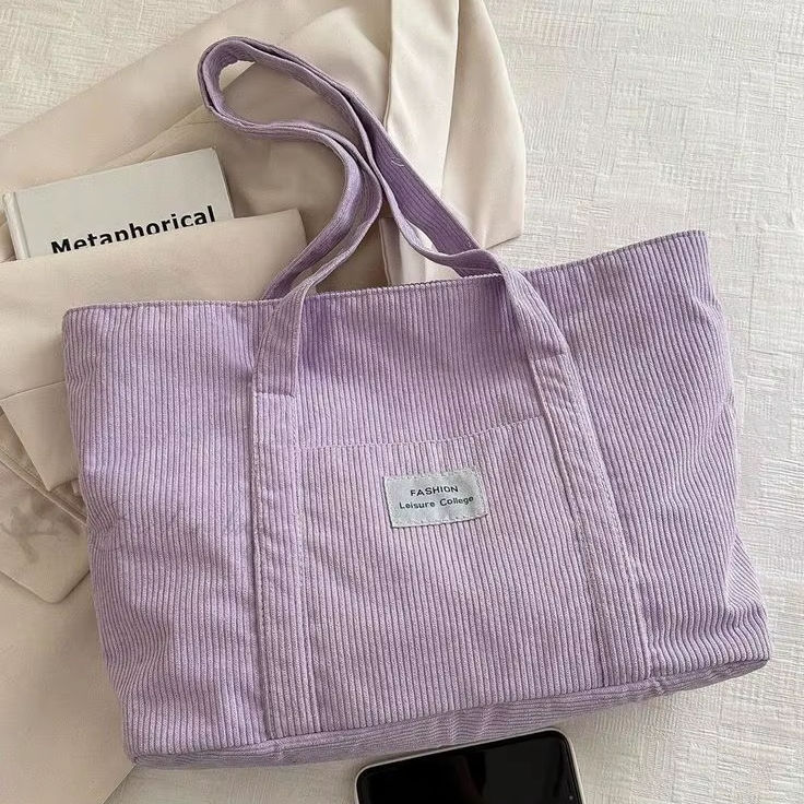 Light Blue Grey Soft Ribbed Corduroy Fabric Tote Bag Women Shoulder Handbag For Shopping Travel Daily Use Bulk Supplier