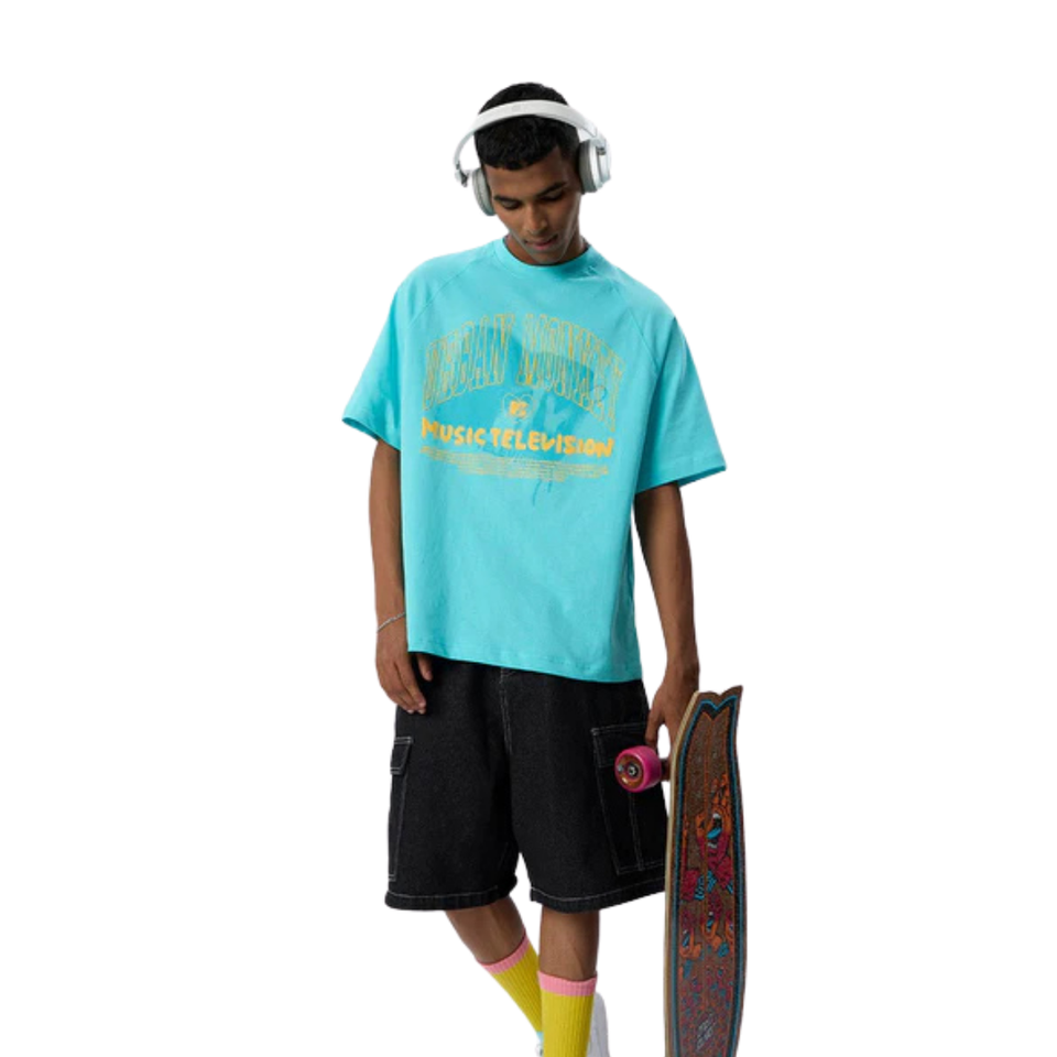 Light Blue Loose Fit Washed 100% Cotton Men's T-Shirts Vintage Style Casual Streetwear Soft Breathable Daily Urban Wear