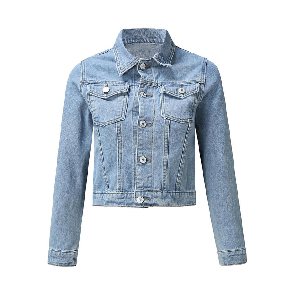 Light Blue Mid Length Washed Casual Winter Denim Jacket Featuring Soft Stretch Fabric Classic Collar Chest Flap Pockets