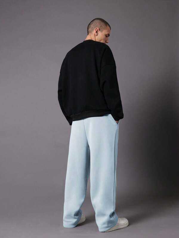 Light Blue men's pants washed Wide Leg Jogger Trousers Loose Fit Elastic Waist Oversized Streetwear Fashion Drawstring Pants