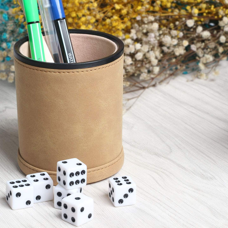 Light Brown Color Beautiful Leather Dice Cup Wholesale Board Game Components PU Dice Cup for Playing Game