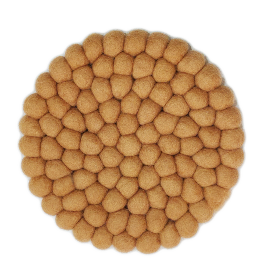Premium Quality 20 cm Light Brown Felt Ball Trivet Durable Classic Style Table Friendly Mats & Pads From Nepal