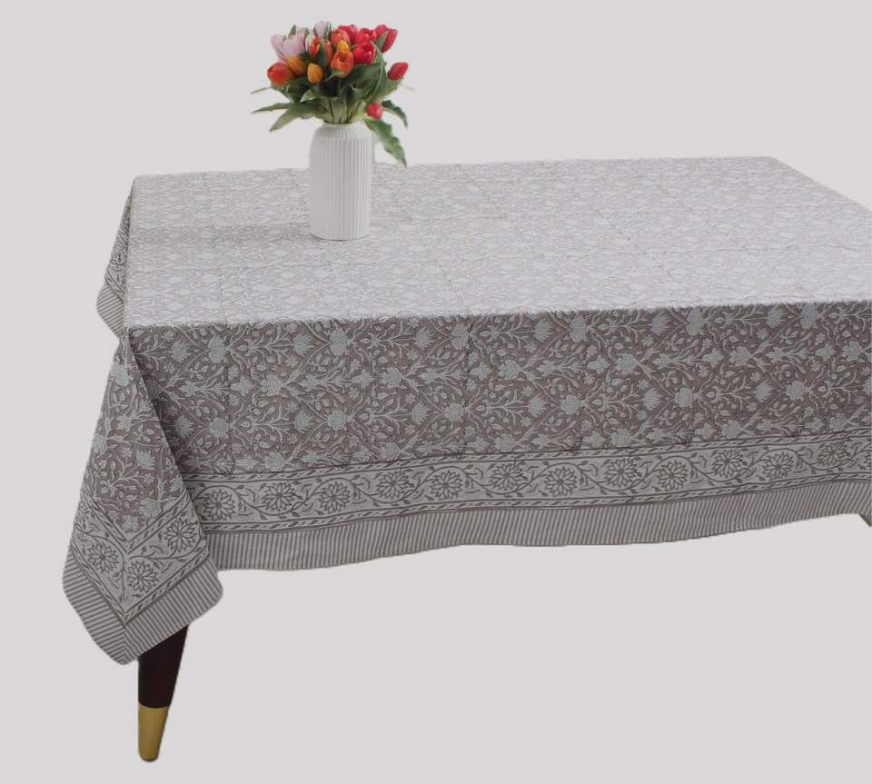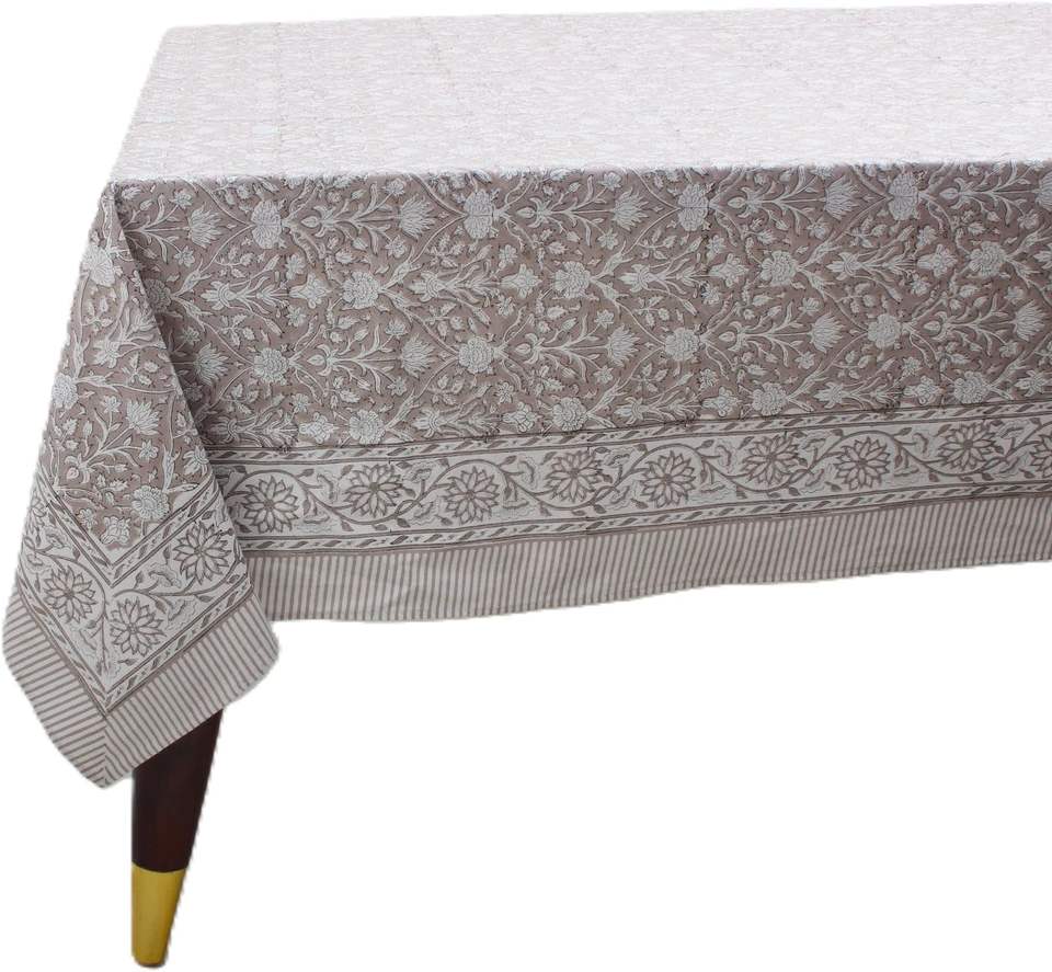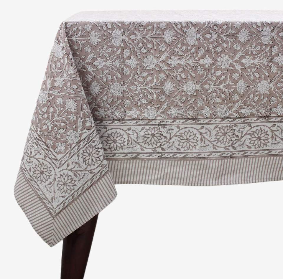 Light Brown Indian Hand Block Floral Printed Pure Cotton Cloth Tablecloth Farmhouse Wedding Restaurant Festive Tablecloth