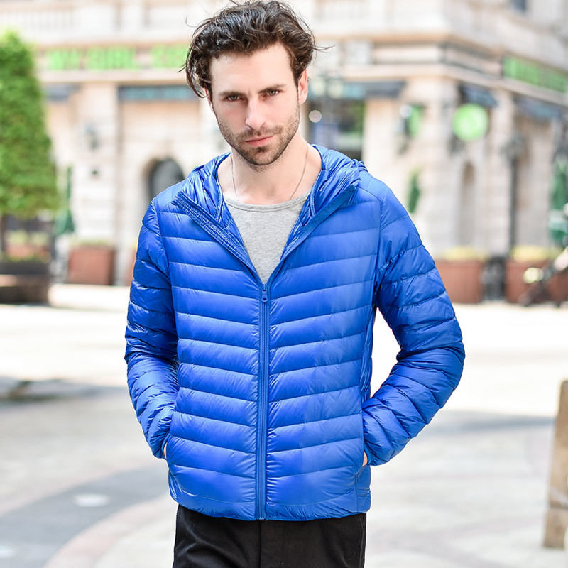 Light Duck Puffer Hiking Custom Winter Men's Canvas Stand Collar Cotton Filled Jacket