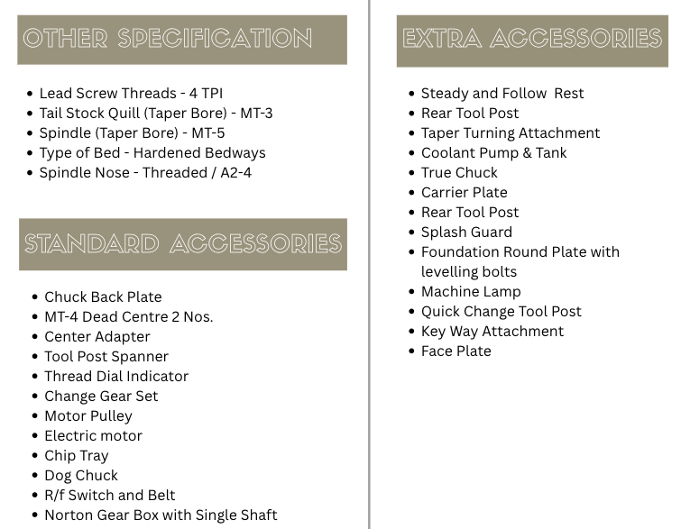Light Duty All Geared Lathe Machine 4.6ft Bed Length 165 mm Centre Height 38mm Bore Size along with Norton Gear Box