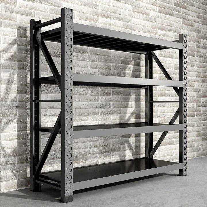 Light Duty Steel Storage Rack 4 Layer Adjustable Black Metal Shelving For Warehouse Household Use
