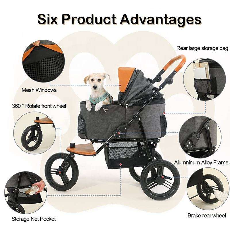 Light Foldable Detachable Medium and Large Cat Dog Outdoors Portable Tricycle Pet Trolley Stroller