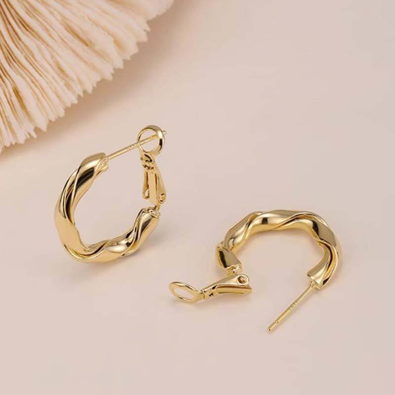 Light Gold Color Braided for Women 2024 New High-end Silver Needle Hoop Earrings
