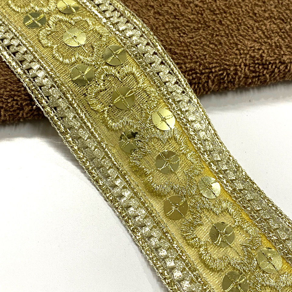 Light Gold Metallic Sequin Embroidery Lace Trim Eco-Friendly for Dress Gown Shoes Gift Packaging Decorations in Wholesale