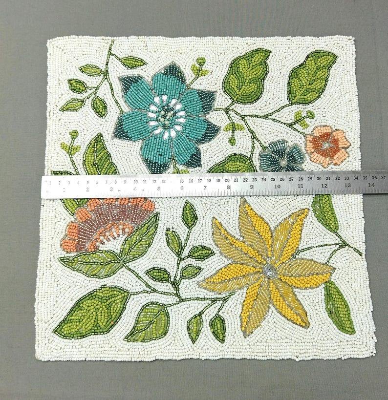 Light Green Beaded Placemat with Flower Shape Glass Material Dining Table Mat/Pad Low Price Online in India