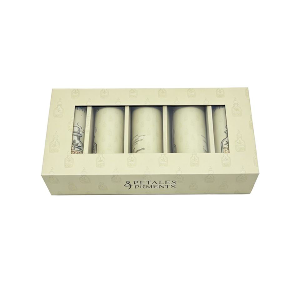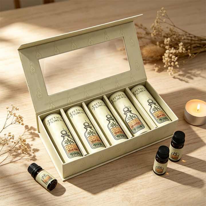 Light Green Rigid Gift Cardboard Box with Clear Window Rectangular Essential Oil Storage Box with Elegant Pattern Design