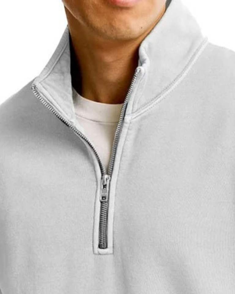Light Grey Half Zip Fleece Sweatshirt Men Winter Warm Soft High Neck Comfortable Casual Loose Fit Long Sleeve Fashion Pullover