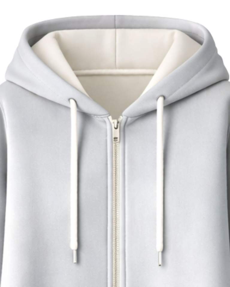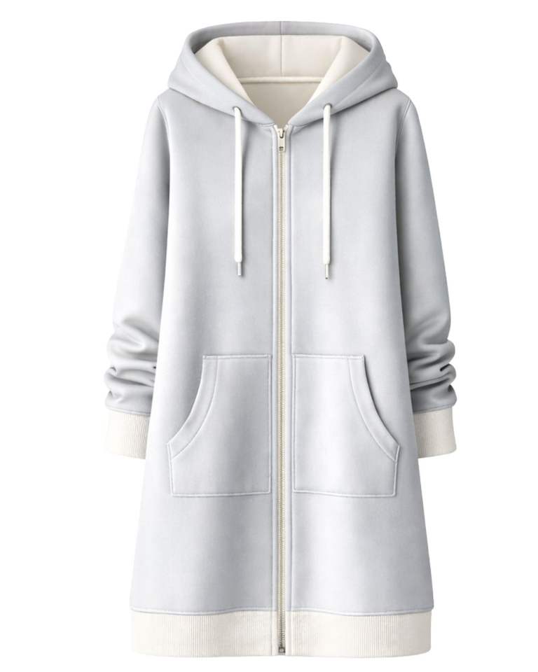Light Grey Long Zip Hoodie Womens Winter Fleece Hooded Sweatshirt Coat With Kangaroo Pockets Casual OEM Custom Factory