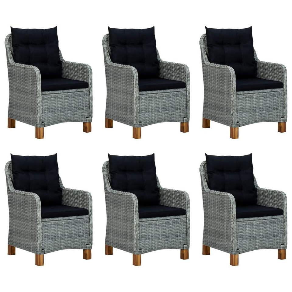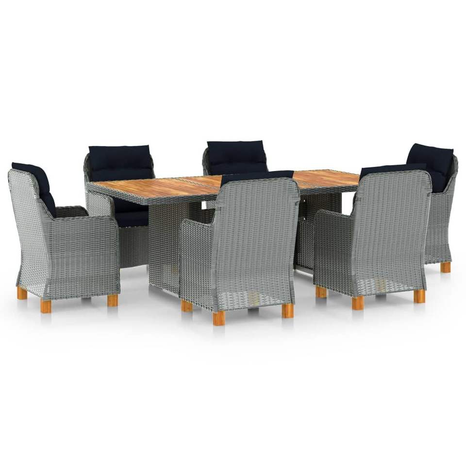 Light Grey Rattan Patio Dining Set 6 Seater Outdoor Garden Furniture Weather Resistant Contemporary Design Teak Table