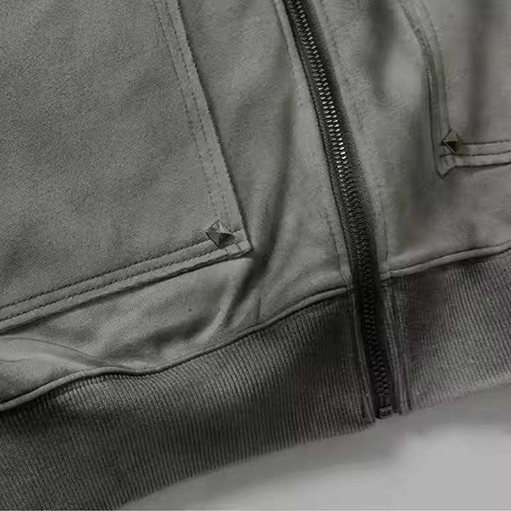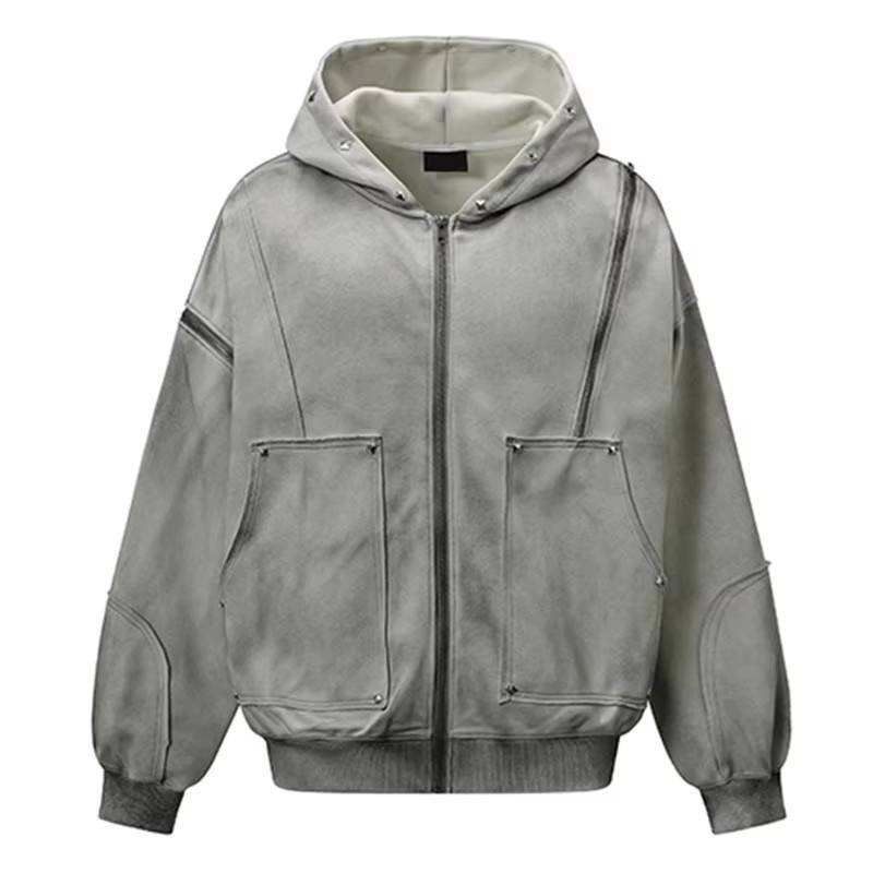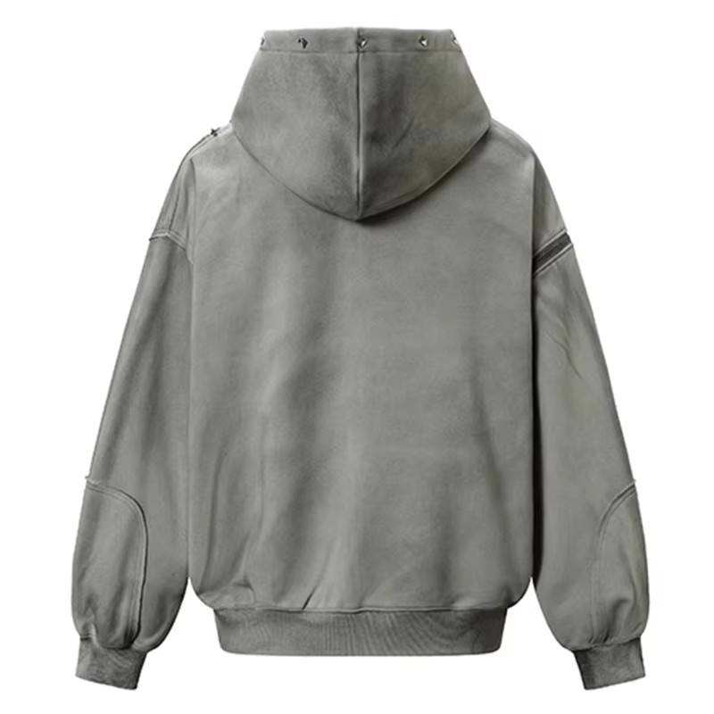 Light Grey Solid Pattern Oversized Utility Zip Hoodie Winter Knitted Breathable and Washed for Winter Season