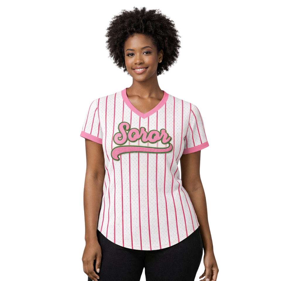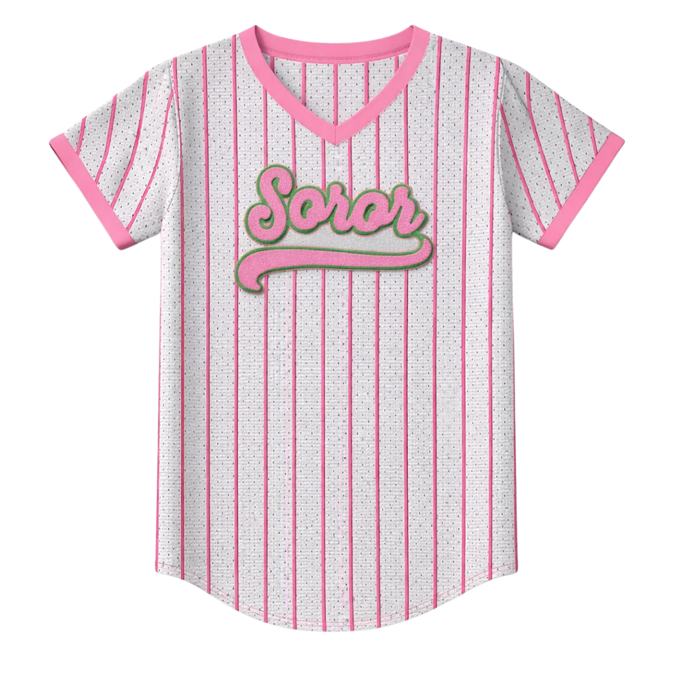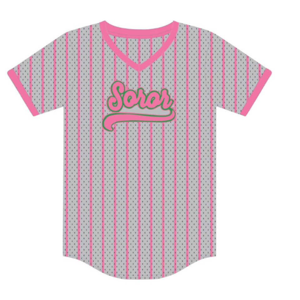 Light Grey Soror Pullover Baseball Jersey Greek Sorority Womens Pink & Green College Sisterhood Stylish Casual Jersey Apparel