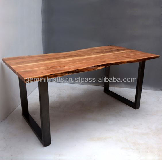 Light Luxury Black Natural Iron and Solid Acacia & Mangowooden Wood Metal Legs Dining Table for Restaurant Tables
