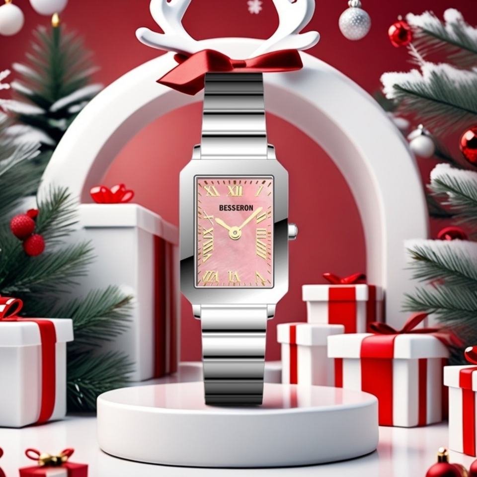 Light Luxury Fashion Women's Pink Christmas Watch Stainless Steel Custom logo Square Quartz Design Business Gift Young