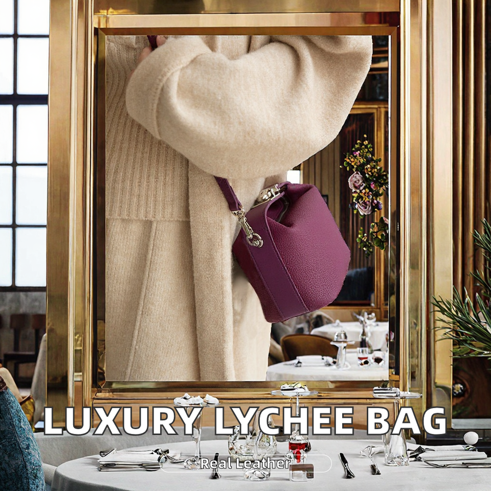 Light Luxury Lychee Patterned Women's Handbag Single Shoulder Diagonal Cross Top Layer Cowhide Genuine Leather Small Exquisite