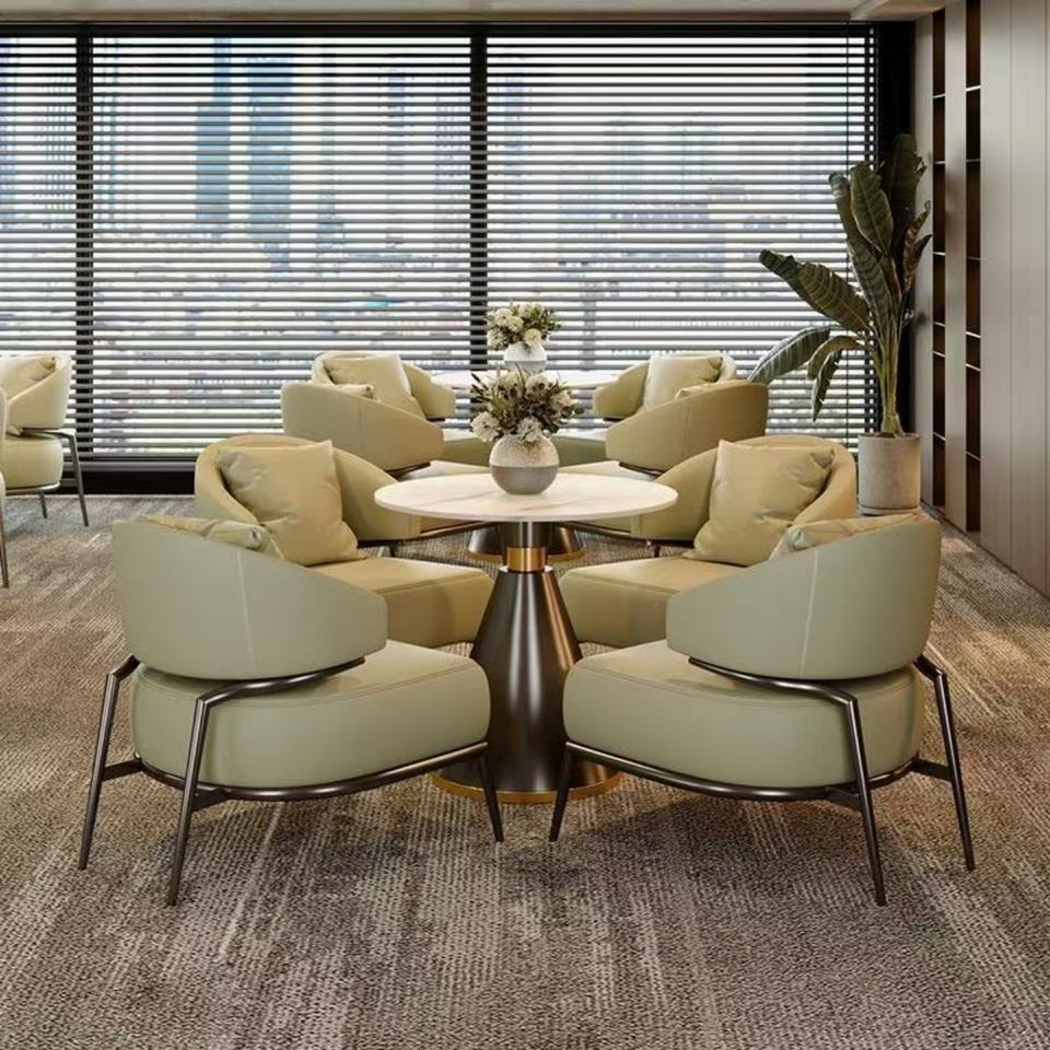 Light Luxury Negotiation Table & Chair Set: Hotel/Sales Office Lounge (Round Side Table, Coffee Table, Sofa Chair)