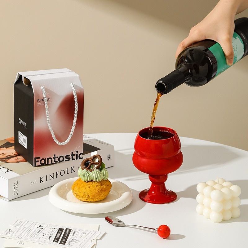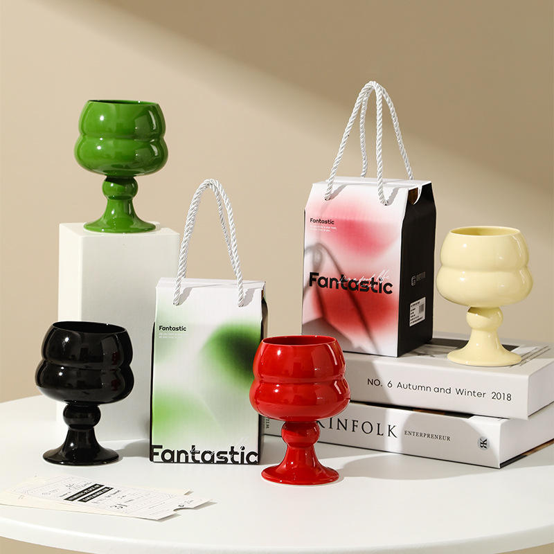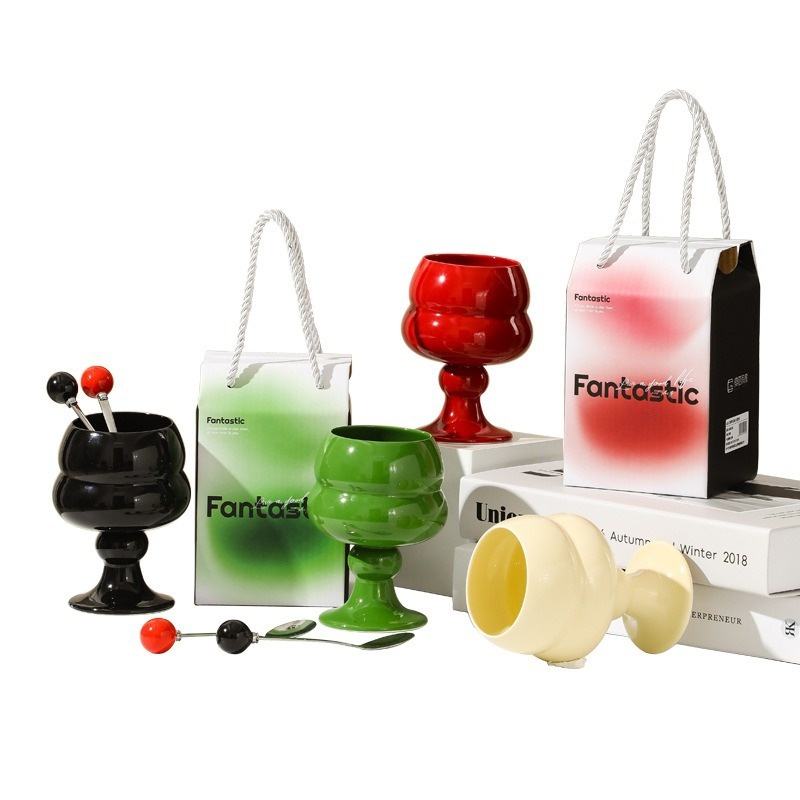 Light Luxury Porcelain Goblet Cup Creative Cute High-Value Ladies' Souvenir Gift for Drink Tea Ice Cream Perfect Bottle for Milk