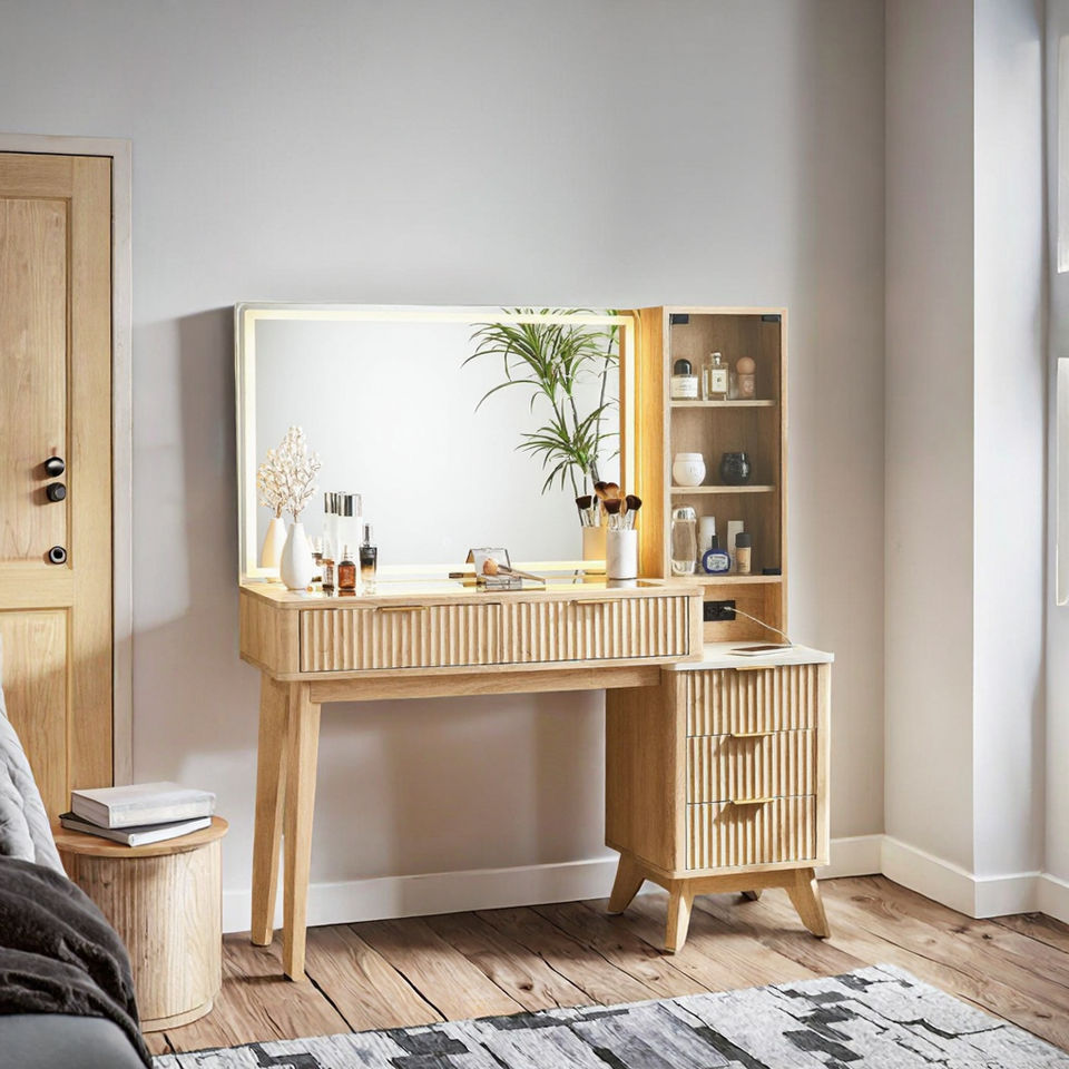 Light Luxury Simple Modern Stainless Steel LED Lamp Dressing Table Oversized Storage Multi-Drawer Adjustable Smart Mirror Panel