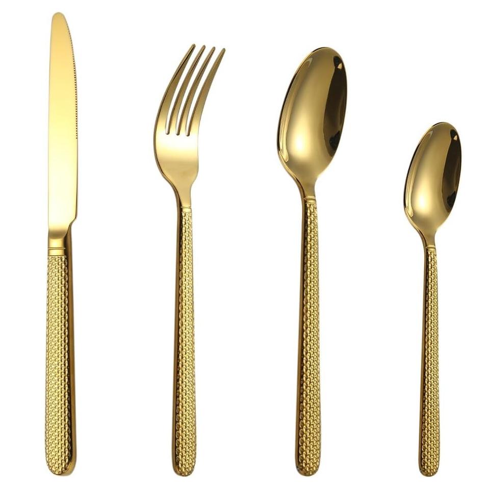 Light Luxury Style Stainless Steel Cutlery Set For Event Dinning Golden Mirror Finishing Designer Flatware Set For Home Use