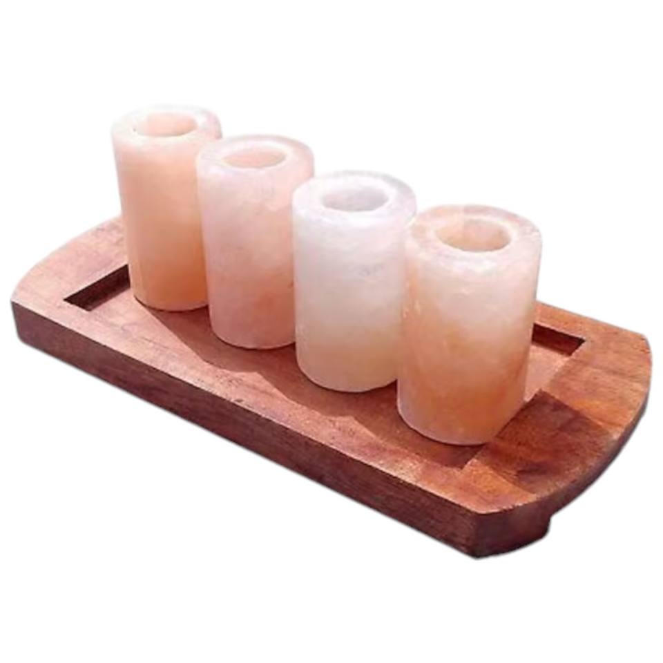 Light Pink Shot Glasses Set with Eco-Friendly Himalayan Salt Tray Feng Shui Style Love Salt Lamp-Glass Natural Crafts