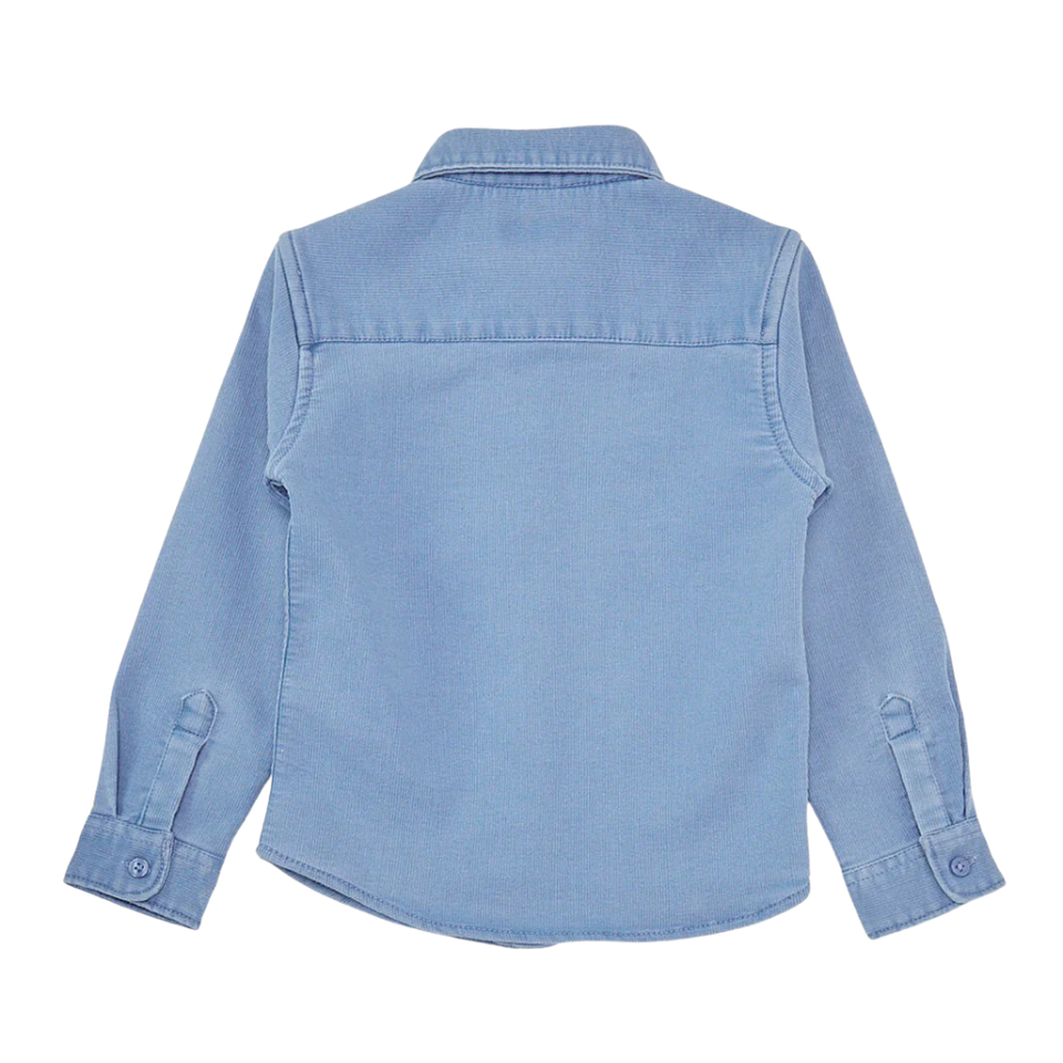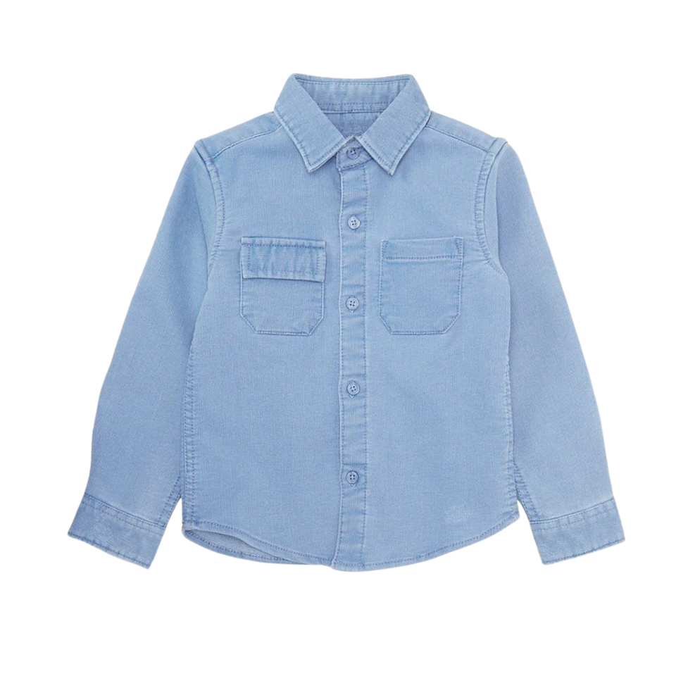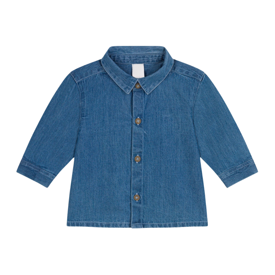 Light Wash Denim Baby Shirt Soft Long Sleeve Button Front Chest Pocket Casual Everyday Wear Durable Comfortable Infant Top