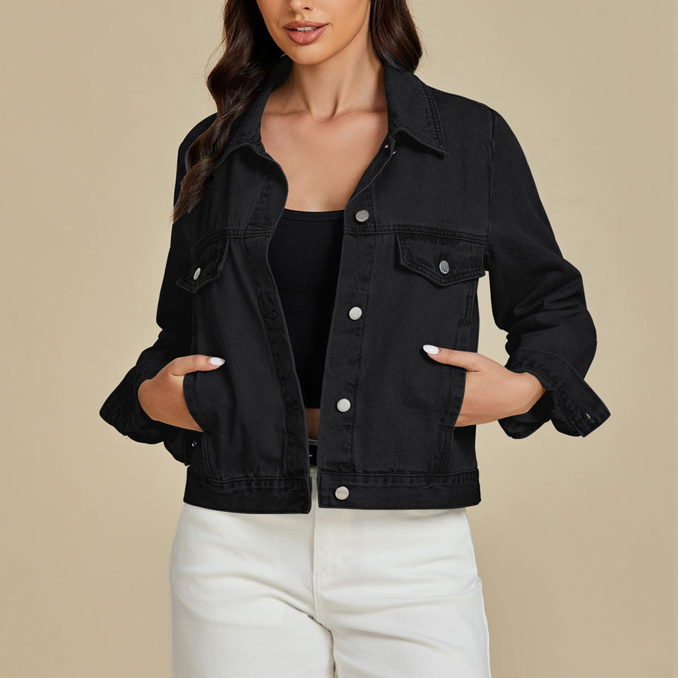 Light Weight Women Plain Dyed Denim Jackets Quick Dry Breathable Women Solid Pattern Denim Jackets For Online Sale