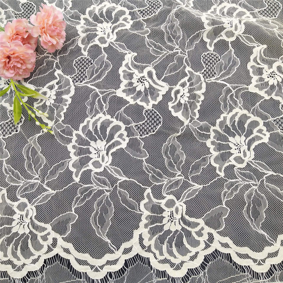Light Yellow Flower French Style Net Knitted Eyelash Lace Fabric High Quality Textile for Sewing Decoration Garments