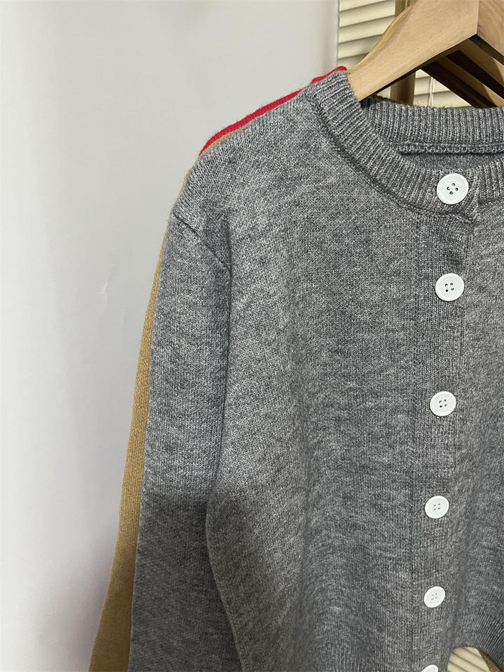 Light blue sweater jacket for women simple knitted sweater solid color cardigan all-match round neck top