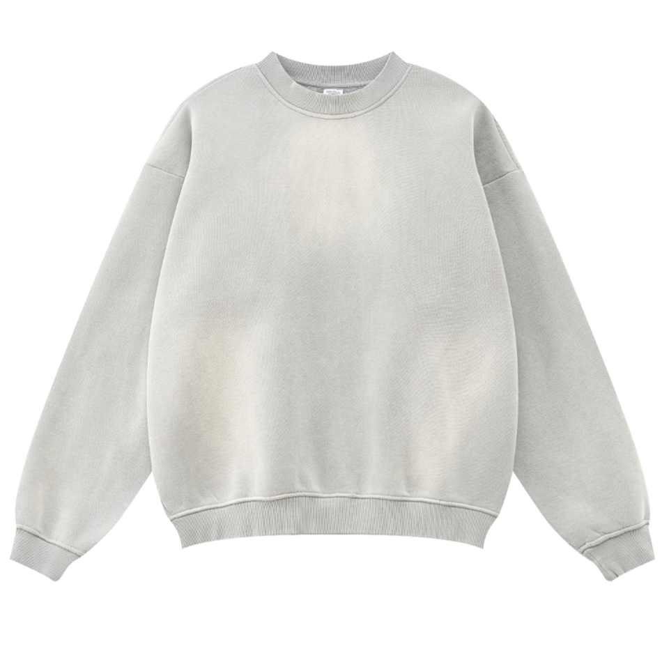 Light Grey Oversized Sweatshirt Men's Fleece Pullover Soft Cotton Blend Crewneck Long Sleeve Regular Fit Casual Embroidered