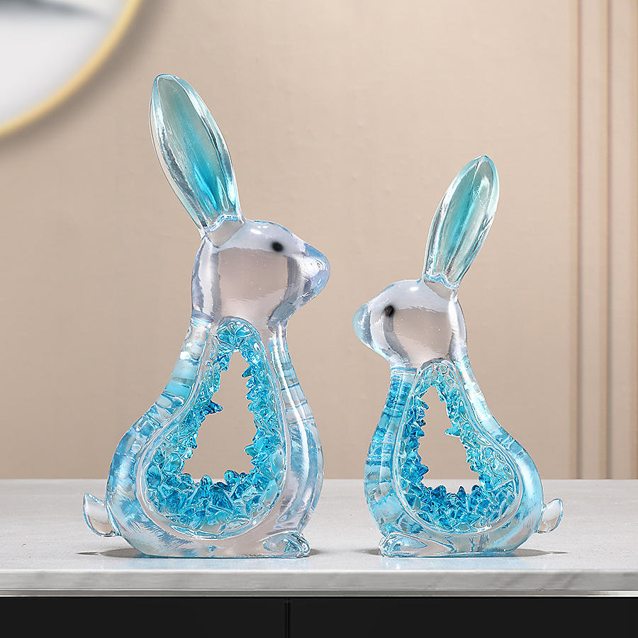 Light Luxury Transparent Gold Foil Rabbit Ornament High-End Epoxy Resin Artistic Folk Art Home Living Room Wine Cabinet TV
