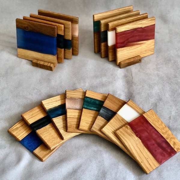 Light weight wooden and resin art join coaster set with custom color drinkware cafe wooden coaster